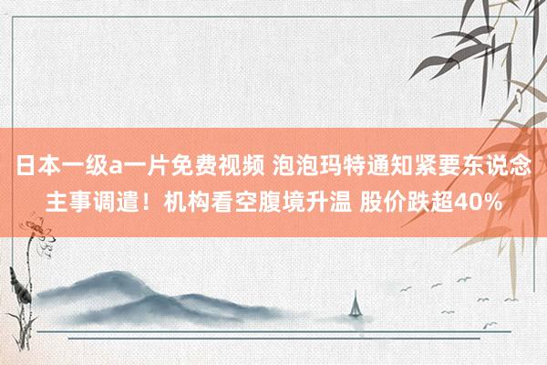 上一篇:日本一级a一片免费视频 泡泡玛特通知紧要东说念主事调遣!机构看空腹境升温 股价跌超40%
